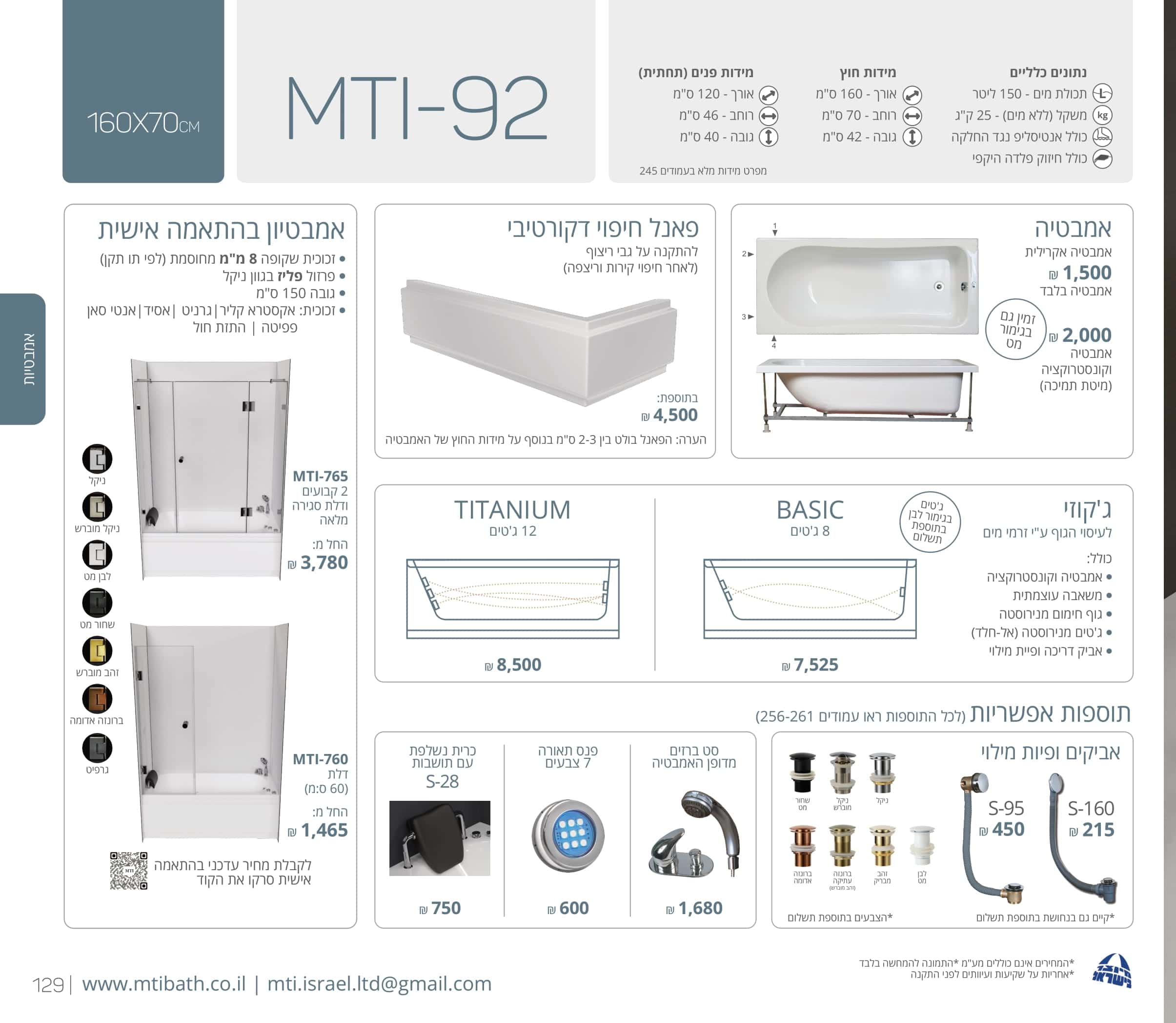 דף הבית / אמבטיות וג'קוזי / MTI-92-160X70 אמבטיה מלבנית